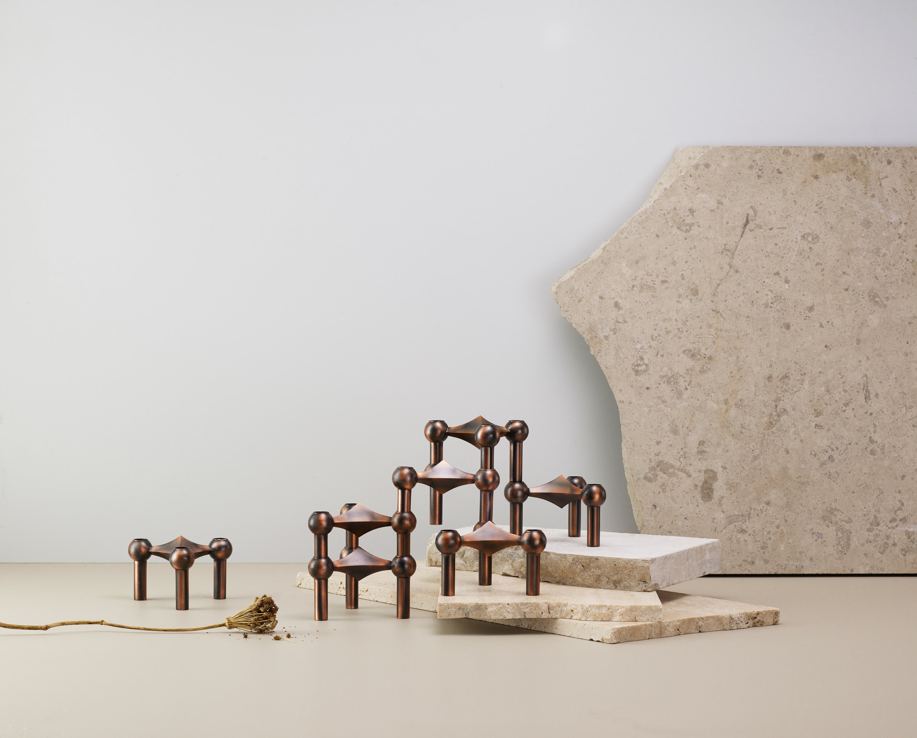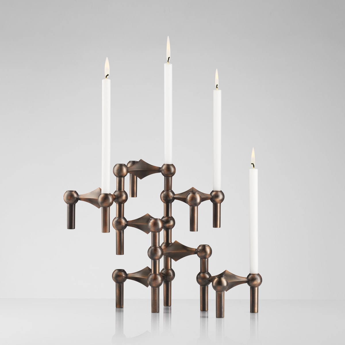 The candle holder was originally designed by Werner Stoff for Hans Nagel in the 1960s. It can be combined with the entire STOFF Nagel® collection into an endless number of beautiful and unique shapes. You can stack and unify it exactly as you want and create your own expression that emphasizes the sculptural features of the STOFF Nagel® design. Use it with tapered candles or leave it merely as a decorative sculpture that embraces your personal style. You can easily remove candle drips by soaking the candle holder in very hot water (almost boiling) with a bit of citric acid.