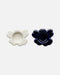 This set includes two Unikko flower shaped tealight holders made of glass. The white tealight holder has a matte finish, and the cobalt tealight holder has a clear finish. We recommend washing the products by hand.