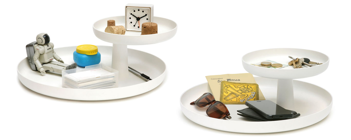 With his design for Rotary Tray, Jasper Morrison has given the classic tiered etagere a new contemporary look. Thanks to its understated shape and colouring, Rotary Tray naturally complements all types of interior styles and can be used for a variety of different functions. Whether in the living room, in a bathroom or entryway, at the office or in a child's room: the Rotary Tray offers a decorative way to tidy up any space.